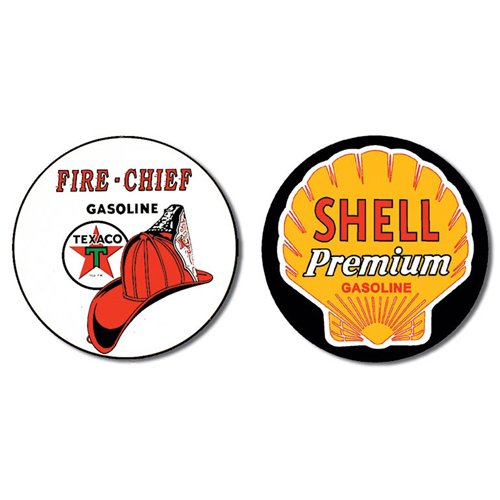 Nostalgic Gas & Oil Tin Metal Sign Bundle - 2 round retro signs: Texaco Fire-Chief Gasoline, Shell Premium Gasoline 0031 Review