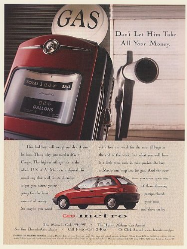1997 Geo Metro Coupe Gas Pump Don't Let Him Take All Your Money Print Ad (53818) Review