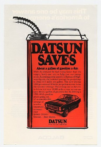 1973 Datsun Saves Gas Gasoline Can Print Ad (5039) Review